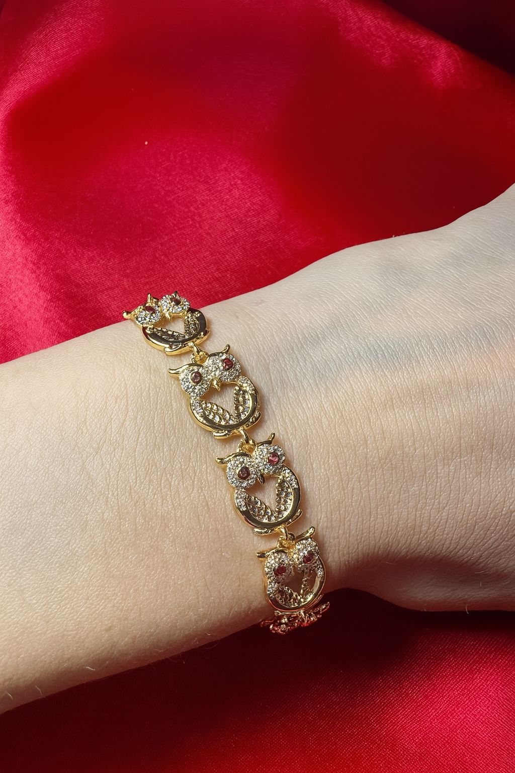 Baykuş figürlü özel tasarımıyla dikkat çeken bu şık bileklik, zarif zirkon taş detaylarıyla ışıltılı bir görünüm sunar. Yüksek kaliteli paslanmaz çelikten üretilmiştir; suya dayanıklı yapısı sayesinde kararma yapmaz. Hem anlamlı figürü hem de dayanıklı yapısıyla günlük kullanım için ideal bir parçadır.